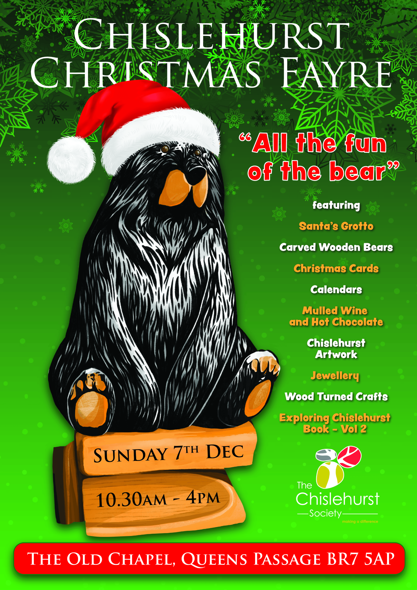Join us for a festive celebration featuring hand-carved wooden bears, local crafts, and Chislehurst Society merchandise. Warm up with delicious hot drinks, and don’t miss a magical moment with Father Christmas (Book here)! A perfect day out for all ages, supporting local makers and community spirit. Veiw poster here.